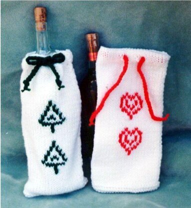 A great idea for wrapping your gifts! Holds a nice bottle of wine, bath salts, candies, and more! After the goodies are gone, you can use this as a shoe bag for travel! Or keep in the closet to store extra socks and pantyhose. The possibilities are endless. Uses thick worsted weight yarn, knitting needles, US # 8.