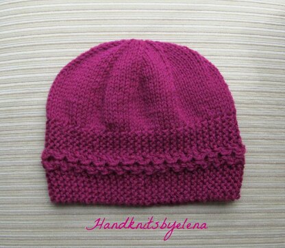 The border of this hat is made sideways, the top of the hat is made in the round.