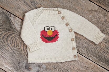 This beginner-friendly pattern helps you create a cozy, top-down baby sweater with Elmo Face embroidered on the front. This knit jacket is worked in one piece from the neckline down, with raglan shaping and a charming asymmetrical front closure along the left raglan line. The pattern includes row-by-row written instructions, making it perfect for beginners or knitters who want step-by-step guidance. You’ll begin with neckline shaping using short rows, continue with raglan increases, work the sleeves flat, and then finish the body. Decorate the smooth stockinette with color Red monster motif embroidery using duplicate stitch colorwork.