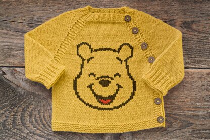 This beginner-friendly pattern helps you create a cozy, top-down baby cardigan with an adorable Winnie-the-Pooh face embroidered on the front. The cardigan is worked in one piece from the neckline down, with raglan shaping and a charming asymmetrical front closure along the left raglan line. The pattern includes row-by-row written instructions, making it perfect for beginners or knitters who want step-by-step guidance. You can print it and check off each row as you go! You’ll begin with neckline shaping using short rows, continue with raglan increases, work the sleeves flat, and then finish the body. The cardigan is perfect for babies and toddlers from newborn to 4 years, and there’s a sweet finishing option for those who love a pop of color: after knitting is complete, you may embroider the sweet Pooh face on the cardigan using the duplicate stitch technique.