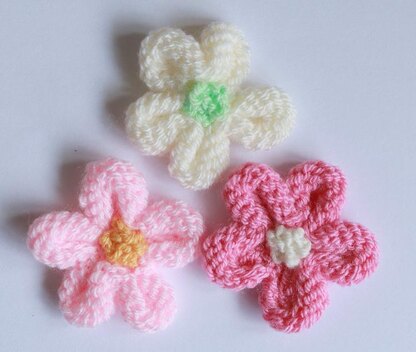This is a quick and simple flower which can be used to decorate hats, mittens, bags etc. Alternatively it can e made into a brooch by adding a pin to the back.