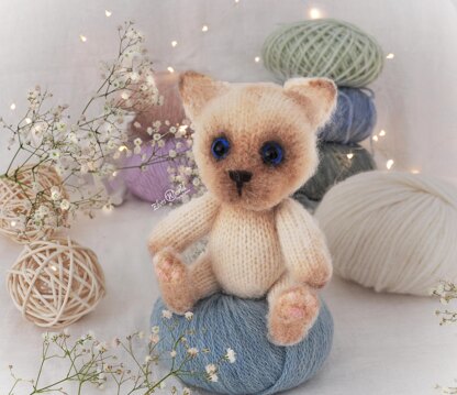 About Kitten knitting pattern: The pattern is written as row-by-row description and contains helpful step-by-step photos for important parts. The file is 19 pages long and contains 90 detailed step-by-step photographs along with complete pattern instructions how to make sweet kitty. The limbs of this toy are poseable.