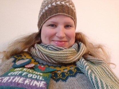 It's ever so slightly embarrassing to think that the best thing I have ever knitted may be this little name badge, but judging by the comments and compliments at Edinburgh Yarn Festival recently it may just be true. I find name badges at places like yarn festivals so helpful for making connections with people I know from Ravelry and other online places. A knitted one seemed like a fun idea and was satisfying to make. Mine was reversible to also cover Spinning Guild meetings where real life names are sufficient. So many people asked how I had made mine (Was it double knitted? Was it steeked? No and no, much simpler- a tube of stranded colourwork with an i-cord border) that I decided to write up the recipe, including my chart for the letters. This is very much a recipe to play with rather than comprehensive instructions, but I hope it provides a springboard for lots more name badges, connections and new friendships. As such it is a free pattern- have fun!