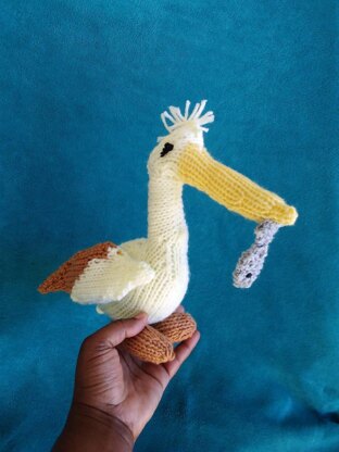 "Meet , the charming knitted pelican! He loves to show off his impressive catch - a beautifully crafted little fish that he's proud to call his own. Made with love and care, a unique, handmade creation, stitched together with attention to detail and a passion for knitting. He's the perfect companion for anyone who appreciates the joy of handmade crafts and the whimsy of a pelican's fishing adventures. He is ready to bring a smile to your face and a touch of handmade charm to your home!"