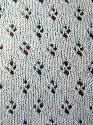 This Quatrefoil stitch pattern (or as I like to call it Cat’s Paw Pattern) consists of eyelets and increases and decreases. You will be making increases and decreases to create strategically placed holes in the fabric. These holes will create an adorable little “paw print”, and since it is four holes, it is often called Quatrefoil.