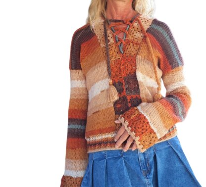 Sentro knitted sweater Pattern for XS - XL with V-neck design.