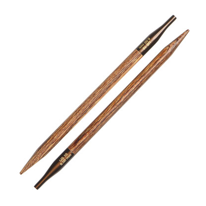 This pair of Ginger Interchangeable Needle Tips from Knitter’s Pride fits perfectly with Knitter’s Pride circular cords. 5in (12cm) in length, they’re made from laminated wood which is warm and comfortable in the hand. Suitable for any type of yarn, these finely tapered points ensure fast and problem-free knitting.