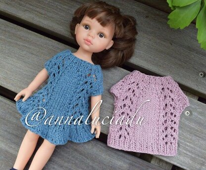 The dress pattern works for 13in/32cm doll and the brand name is Paola Reina. Any doll close to this size will be fine. You can also change the yarn weight to make for your either smaller or bigger dolls too.
