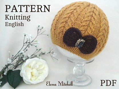 Knitting PATTERN Baby Hat with Crochet Bow 0 - 12 months