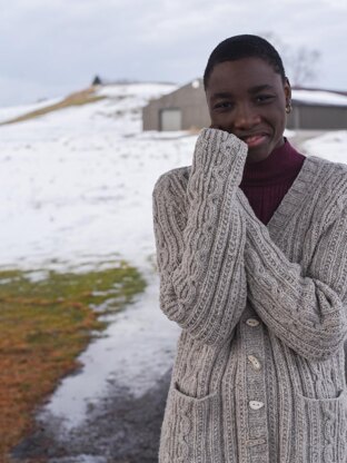 This cushy, unisex cardigan or pullover in eight teen and adult sizes (XS, S/M, L, 1X, 2X, 3/4X, 5X, 6X) is a fun, fast knit with deliciously easy-to-work texture all over. Knit flat in pieces from hem to neck, it has crew neck or V-neck options—and yes, pockets! The neck and front bands are completed with yummy ribbing for a soft finish. Intended to be worn with a slight drop shoulder and boxy/oversized fit, this sweater can easily be shared between mates if it doesn’t cause a squabble (but you could always knit a second one, just sayin’).