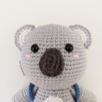 The finished koala ends up approximately 19cm tall using similar yarn and hook size. Thinner yarn and a smaller hook size will produce a smaller toy and vice versa