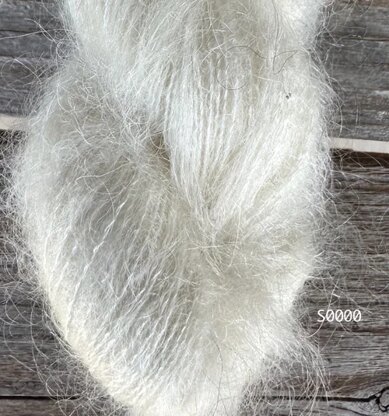 Our new lace weight mohair! Hold it together with another yarn to add a halo effect or as a single strand. Lace mohair and silk yarn is a luxurious, lightweight blend often used for delicate, airy, and elegant knitting or crochet projects. This type of yarn typically combines the softness and fluffiness of mohair with the sheen and strength of silk, creating a fine, wispy texture that's perfect for shawls, scarves, and layering pieces.