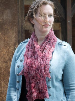 Just so, in the fully reversible Konstanz scarf, eddies of lace swell this way and that, never yielding a clue as to which side is “right”; a handy trick in a scarf. Using just 440m of luxury yarn, it’s a pretty muffler to tuck in your coat against the autumn breeze.