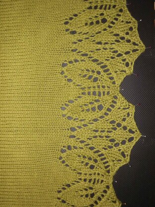 The pattern is written for a knitter with medium skills, a knitter who is able to work lace according to a chart, increase and decrease and knows how to do a “wrap and turn”.