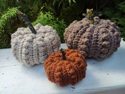 - Ich habe die Kürbisse mit Bravo gehäkelt. Ich habe sie einmal einfädig, einmal zweifädig und dann dreifädig gehäkelt.