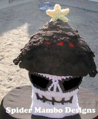 Bwa hahahaha! It looks like an innocent Christmas Tree Hat....but then you wonder why is it black....you look a litter closer...and WOAH! It has skulls instead of boughs. Even I am not this diabolical. The concept of this hat was designed by Veronica Valdez. I just wrote out the pattern. Size is determined by hook size. Small uses a G hook. Medium an I, and large, a K hook.