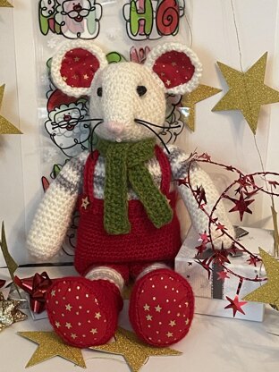 A crochet pattern for a cute mouse dressed in colours to suit the Christmas season or change yarn colour to your own choice. UK crochet terms.