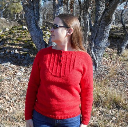 Ksour is a smart henley sweater, with a bib front and a button placket.