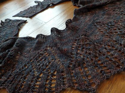 La Barucci is a crescent shawl with lace edging, worked from the bottom-up.