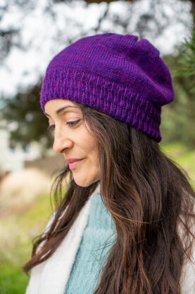 Get ready for the most luxuriously comfortable hat you’ve ever worn! La Brique Hat is pleasantly slouchy and so so soft. The beautiful twisted rib brim leaves a smooth interior that is enjoyable on the ears and the roomy stockinette in-the-round body knits up quickly and easily. In between the two sections, there’s a subtle transition pattern that helps them flow together. The result is a hat that is so light yet cozy that it feels like wearing a warm cloud. You’ll be relaxed while knitting and wearing this satisfying hat! Knit from less than a skein in a super soft cashmere blend, this hat is a great use for that fancy fingering weight yarn you’ve had your eye on.