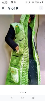 A long duster style vest that is around 48ins long, that's warm, stylish and cozy. This vest also has a hood, 2 pockets, and 4 cargo pockets that make it a nontraditional unique piece to add to your closet.