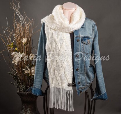 La Marsica Scarf is exquisitely textured by using Double Crochet Front Post stitches creating a raised and almost 3-dimensional damask effect of the fabric. In keeping with the repeat row count, this scarf can be made to any desired length. The width can be adjusted by increasing or decreasing the multiple stitch count. The yarn used is soft to the touch and is easy care.