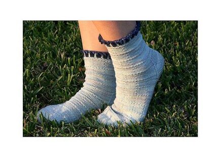 Skills needed: provisional casting on, knitting in the round, purling, picot binding off. Gauge: 36 sts/52 rows over 4 in/10 cm in stockinette.