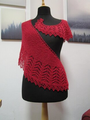 LA VIE EN ROUGE è un elegante scialle crescent moon lavorato con uno straordinario filato Malabrigo Silkapaca (70% Baby Alpaca 30% Seta) in un caldissimo color 611 Ravelry Red; per farlo ho utilizzato poco meno di 100 grammi (circa 700 metri) di filato che ho lavorato a due capi per renderlo avvolgente e caldo, nonostante il peso estremamente leggero. Ho utilizzato ferri circolari del 3,5 e cavi diversi man mano che il lavoro avanzava, partendo da un cavo di 20 cm.