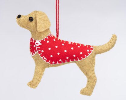 Make your own Bailey the Labrador felt ornament with this downloadable PDF sewing pattern. Bailey is wearing a cotton print jacket trimmed with a button. He measures 5.5 inches/13.5cm from nose to tail and has a loop for hanging. The pattern includes full instructions with step by step photos, a materials list and full size pattern templates. All the stitching is done by hand, you don't need a sewing machine. You will need small pieces of felt, a scrap of patterned cotton fabric, small buttons and some filling, scissors, needle and stranded cotton embroidery threads.