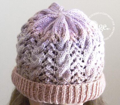 This lace and cable hat is a quick knit, and would make a great accessory to any little girls’ wardrobe, and is both practical and pretty. Knitted on the round, no sewing, and enough stitch variation to keep your interest. This hat was knitted in Patons Rainbow 8ply DK, 200 gram ball, Universal yarn DK would also work well.