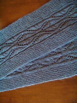 This is a cozy scarf with a graceful lace and cable center panel. It coordinates with Cascade's pattern Lace and Cable Hat. It works best with DK or worsted weight yarn, but is also suitable for sport or aran weight.