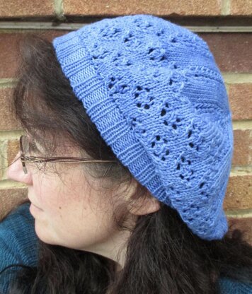 It begins with a provisional cast-on and a double thickness brim to ensure the beret stays firmly in place. A classic lace pattern makes for a pretty and feminine hat with lines of eyelets following the decreases up to the crown.
