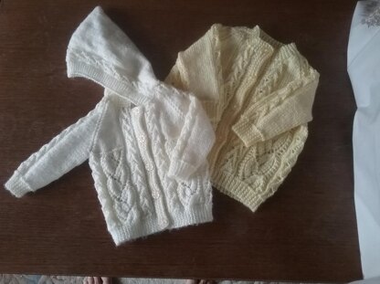 Lace Baby Hoodie and Cardigan, sizes 0-3 months and 6-12 months (18" and 22" chest), knitted in either 4ply or double knit.
