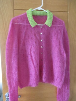 This is a pattern for a lace columns cardigan, originally designed for Scheepjes. The main part is in Mohair Rhythm, in a subtle lace columns stitch. The collar is in Alpaca Rhythm in a rib and the rest of the edges are ribbed.