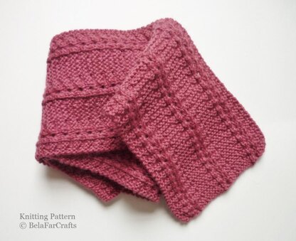 This pattern is a great introduction to lace knitting using basic stitches. The light scarf measures about 11.5cm x 110cm (4.5in x 43in). It is a comfortable size for a child and ideal for adults who wish to have a small accessory around the neck during the changing seasons.