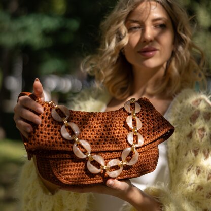 The master class for creating a crochet bag with a lacy flap includes: a step-by-step video tutorial (2 hours 26 minutes long) on how to crochet the bag, as well as a PDF file with a complete list of materials, links to websites for purchasing supplies, a discount promo code, a detailed description, and calculations. Skill level – intermediate. Crochet time – 2–3 days.