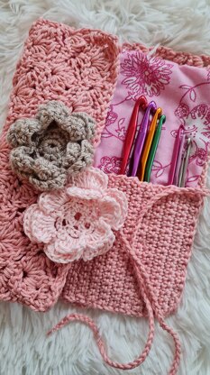 This is a lovely romantic lace crochet pattern. It is originally designed to hold my hooks and other crochet gadgets sorted, especially when travelling. However, this can also be used as a make up holder, an art supplies case (for brushes, crayons and paint tubes), etc. You can use bigger yarn weights other than the one specified for this project, but please note that will make the case larger/bigger than the one in this pattern.