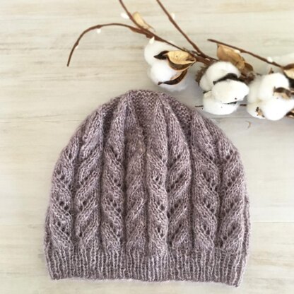 This beautiful, slightly slouchy lace knit hat uses soft as cloud Alpaca mix yarn and features lovely leaf lace effect. This delicate beanie is an elegant addition to each and every wardrobe!