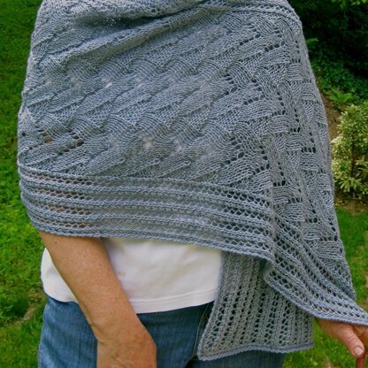 This is a pattern for a light weight wrap. It's heavier than a shawl, but just the ideal weight for a spring or fall evening, or even if you're sensitive to air conditioning in the summer. It knits up fairly quickly and would make the ideal gift, for yourself of someone that's special to you. It is made up of two different lace stitches that are both written out line by line, and charted. The final size is 19 inches by 72 inches, There are instructions for an optional edging contained within the pattern, should you want it edged. Skill Level: Intermediate (assuming a basic knowledge of lace knitting) The yarn used in the sample is Lorna's Laces Shepherd Sport in the colorway, Fjord