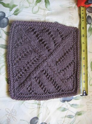 You must download the pattern Lacy Blanket Square by McElwain to work this tutorial. The tutorial is designed to teach you how to make this block from the outside in, using two circular needles. If you are adept at Magic Loop or dpn's, you could adapt it to those. I also modified the instructions for a smaller 9" block finish suitable for Vanna's Choice Swaps.