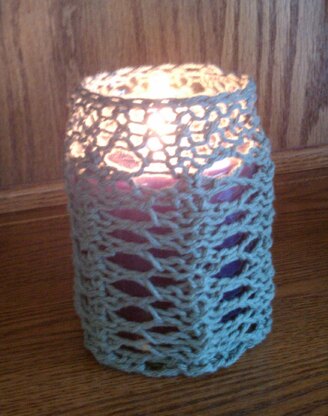 This advanced beginner lace pattern is made using an 18 peg circular loom or using a long Knifty Knitter loom with clips to create an 18 peg loom for knitting in the round. The lacy style allows the candle light to shine through the cozy, creating a soft effect. A basic cotton yarn is recommended. One cozy knits up in a couple of hours and makes a great little gift. This cozy could also be used over a Mason jar filled with goodies for a cute Christmas present. The cozy will also work on just about any 5" tall jar candle that's around 4" in diameter. You can increase or decrease the height to fit any jar you desire.