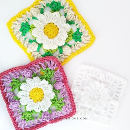 The Lacy Daisy Granny Square is a simple and beautiful lace square with a tridimensional daisy in the center.