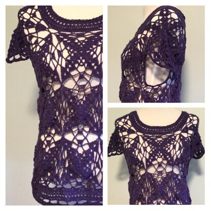 This pattern uses lace crochet motifs to create a beautiful and romantic flutter cap-sleeve top with slight ruffle effect. The motifs are joined together to provide a lace-inspired top that is perfect for the spring and summer months worn over a camisole or tank. The pattern is written as a ‘one size fits most’ with suggestions on how to change the width of the garment, or modify the length to create a tunic top.