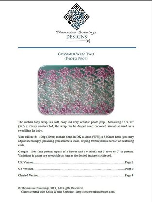 The crochet patterns for two different styles are provided. Each containing the UK version, the US version and a chart.