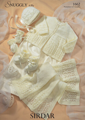 Lacy Matinee Set in Sirdar Snuggly 4 ply 50g - 1662 - Downloadable PDF is a Knitting pattern by Sirdar, available as a Downloadable PDF and includes instructions in English. Super fun to make, this pattern could be your next masterpiece!