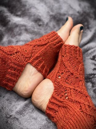 Lacy Red Yoga Socks is a funny and quickie project, not only for yoga lovers. I wear them around the house as a leg warmers.
