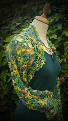 Shrug is crocheted with Araucania Puelo Baby Llama. This super soft colourful yarn along with the lacy design pattern creates a shrug that can be worn for any occasion. Shrug is worked in one piece and then finished with a lacy edge pattern.
