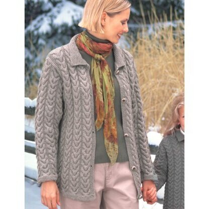 Ladies Cuddly Cables Cardigan (knit) in Patons Classic Wool Worsted