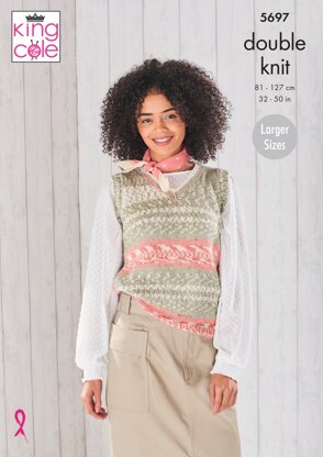 Ladies Round and V Neck Tank Tops Knitted in King Cole Fjord DK - 5697 - Downloadable PDF is a Intermediate Knitting pattern by King Cole, available as a Downloadable PDF and includes instructions in English. Super fun to make, this pattern could be your next masterpiece!