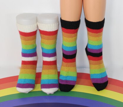 This is my Ladies Simple Rainbow Socks (Circular) knitting pattern. I have spent over 2 years developing this pattern so that they are very easy to make and turn out PERFECT every time. This makes sock knitting FUN! The knitting pattern provides full instructions for 3 ladies sizes: S (8-9 inches), M (9-10 inches) and L (10-11 inches) and there are numerous photos to help you throughout. They are made in any 4ply sock yarn of your choice on 2 mm double pointed needles. Even the largest size takes only 65g of 4ply wool. The heels are worked in short rows without having to wrap and turn, meaning you can easily whip up a pair while watching tv.